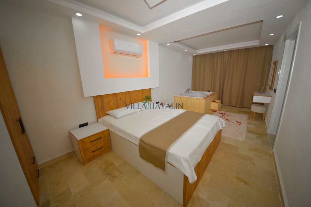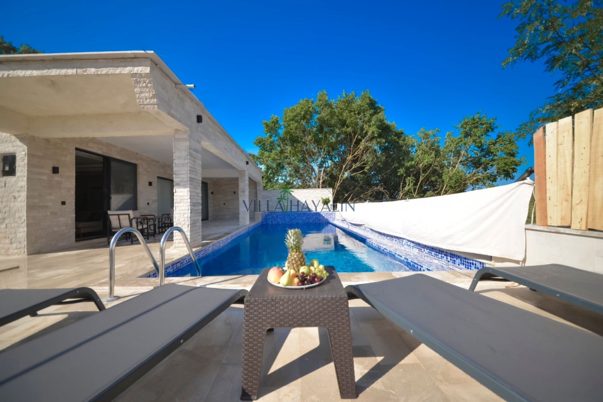 Antalya/Kaş/Bağlıca köyünde yer alan 2 yatak odalı 5 kişi kapasiteli tatil villasıdır..Özel havuzlu ve havuzu korunaklı villamızın geniş havuzunun yanı sıra çocuk havuzu da yer almaktadır.Geniş bir de bahçesi yer alan villamız 2022 yılında yapımı tamamlanmış olup oldukça yeni bir binadır.Sade ve şık bir tasarıma sahip villamızın bir de çift kişilik jakuzisi yer almaktadır.