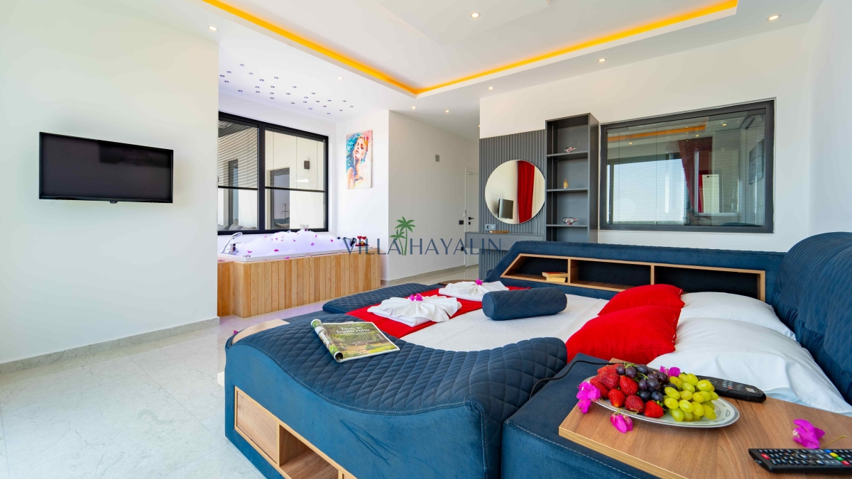 Her iki yatak odasında bulunan jakuzi ile rahatlamak, villanın sunduğu ayrıcalıklardan sadece biridir. Ayrıca, villada yer alan jakuzi ve sauna ile tüm yılın stresini ve yorgunluğunu atabilirsiniz. Özenle seçilmiş lüks dekor ve modern tasarım, konaklamanızı unutulmaz kılacak; tatiliniz boyunca kendinizi ayrıcalıklı hissedeceksiniz.