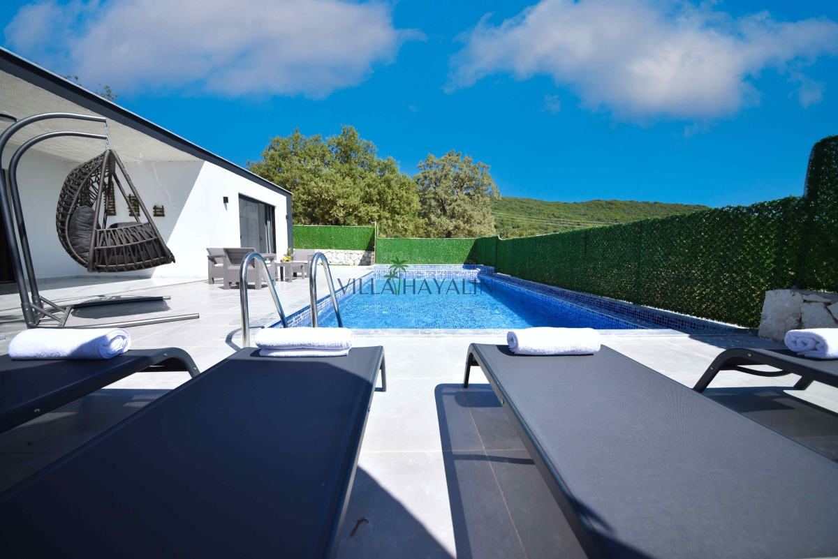 Antalya/Kaş/Bağlıca bölgesinde yer alan 2 yatak odalı 5 kişi kapasiteli tatil villasıdır.Villamız doğa içine konumlanmıştır ve çekirdek aileler için oldukça uygundur.Villamızın içinde çift kişilik jakuzi yer almaktadır.Çocuklu aileler için uygun olan villamızın bahçe alanı ve çocuk havuzu da yer almaktadır.
